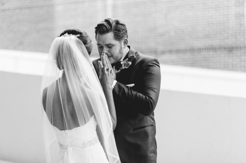 The biggest concern about first looks is that it will ruin the traditional moment, when the bride walks down the aisle. Here is the thing about grooms -- they are sometimes hesitant to show emotion in front of 200 guests (and if you're not having an "unplugged" ceremony, all of their phones for social media.) Grooms seem to be more genuine when it's just the two of you and then emotional again at the alter because they're more at ease and able to really soak in that moment. I often recommend for brides who are wearing a veil to save it for their walk down the aisle, so that it will feel like he's seeing you for the first time, again.