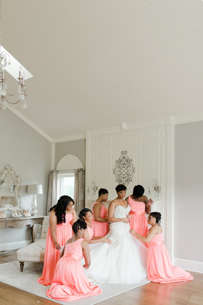 I arrive at the bridal suite to photograph the bride's details, including: your dress, shoes, jewelry, and any other special items you have set-aside. We will capture the finishing touches of hair and makeup, and if you and the bridesmaids wore a special outfit, we'll snap a group photo before you get dressed.