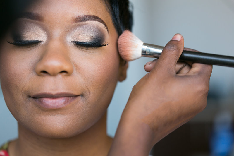 The bride’s hair and makeup should be well underway to leave plenty of time for family and couple photos. Most of the bridesmaids should already have their makeup done, and they are now helping to keep the day fun and flowing smoothly.